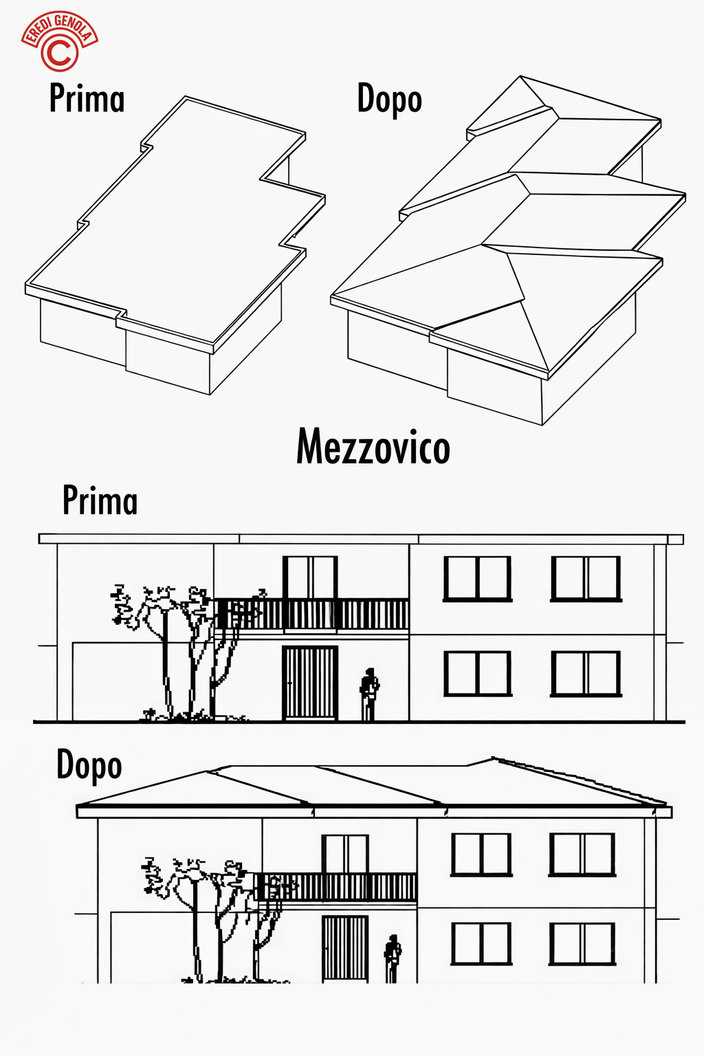 Tetti piani trasformati in tetti a falde